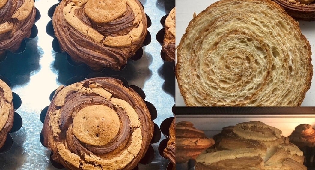生地にメープルを折り込み、上に特製クッキーを乗せて